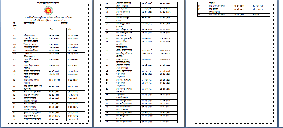 | ০৮ | মোঃ হাবিবুর রহমান (অঃদা) | ০৪-০৬-১৯৯৯ | ১৪-০৭-১৯৯৯ |